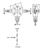 The GV-133-M-DBB feature two 5.0mm bore independently operated globe style needle valves for Isolation service with an intermediate globe style needle valve for venting service